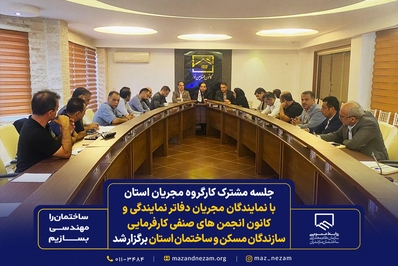 به گزارش روابط عمومی نظام مهندسی ساختمان مازندران، این جلسه با حضور دکتر رزقی نائب رییس، مهندس سلطانی خزانه دار، مهندس محمدنیا و مهندس زحمتکش از اعضای هیات مدیره و کارگروه مجریان استان روز یکشنبه ۳۰ شهریور در محل دفتر نمایندگی نور برگزار شد.