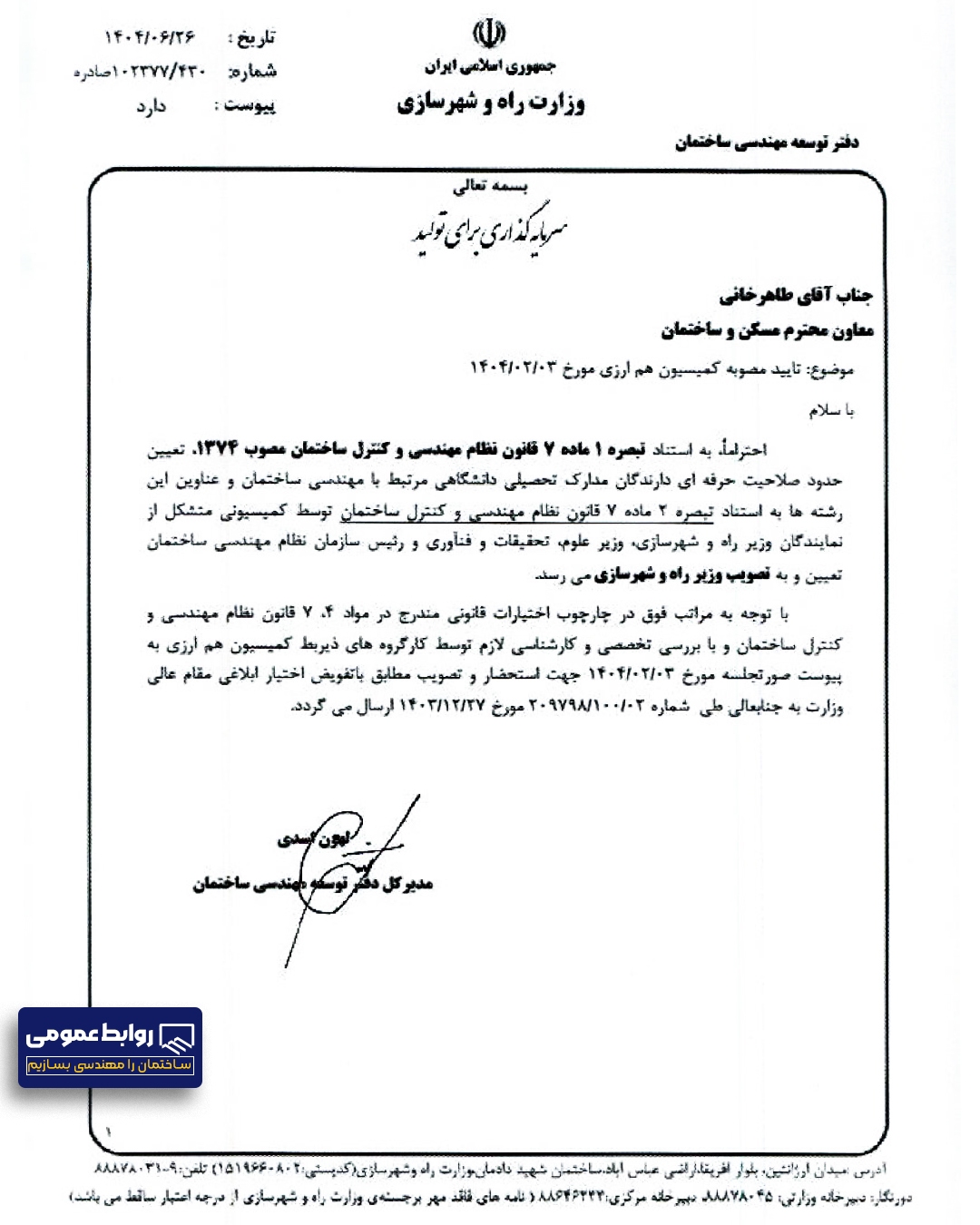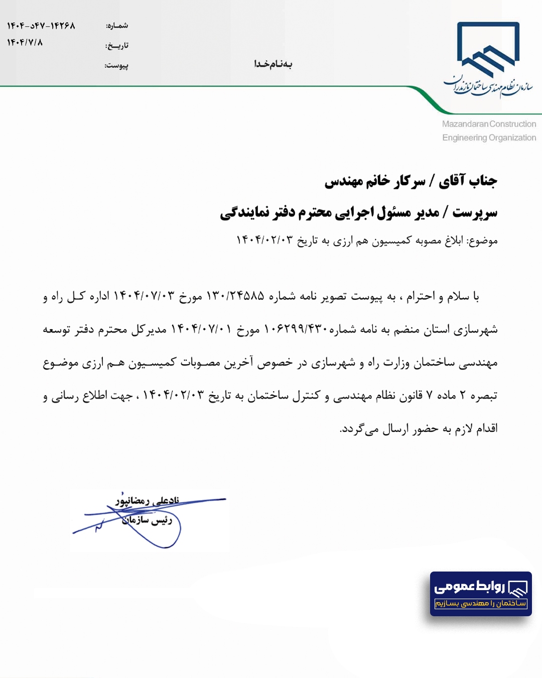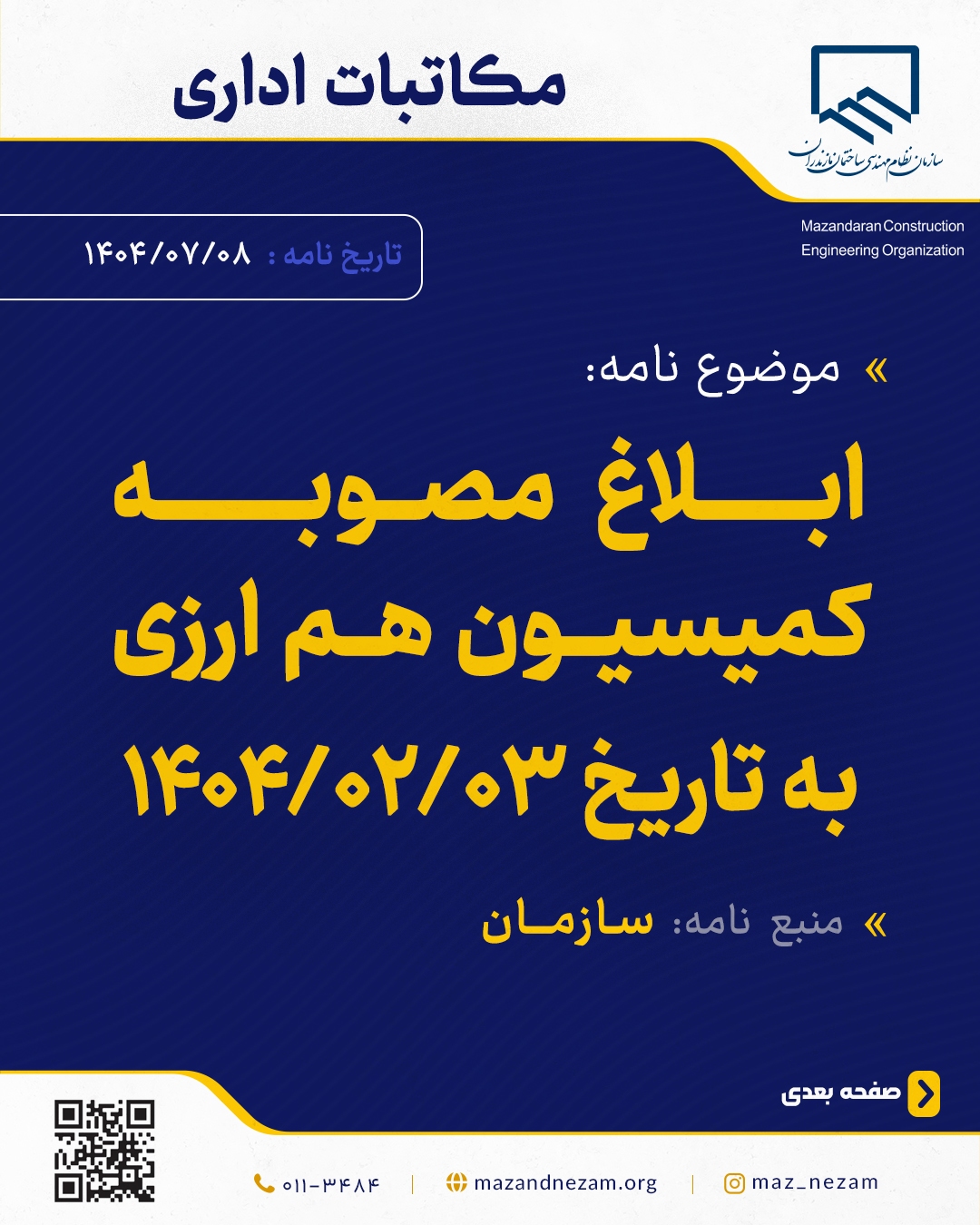 ابلاغ مصوبه کمیسیون هم ارزی به تاریخ ۱۴۰۴/۰۲/۰۳