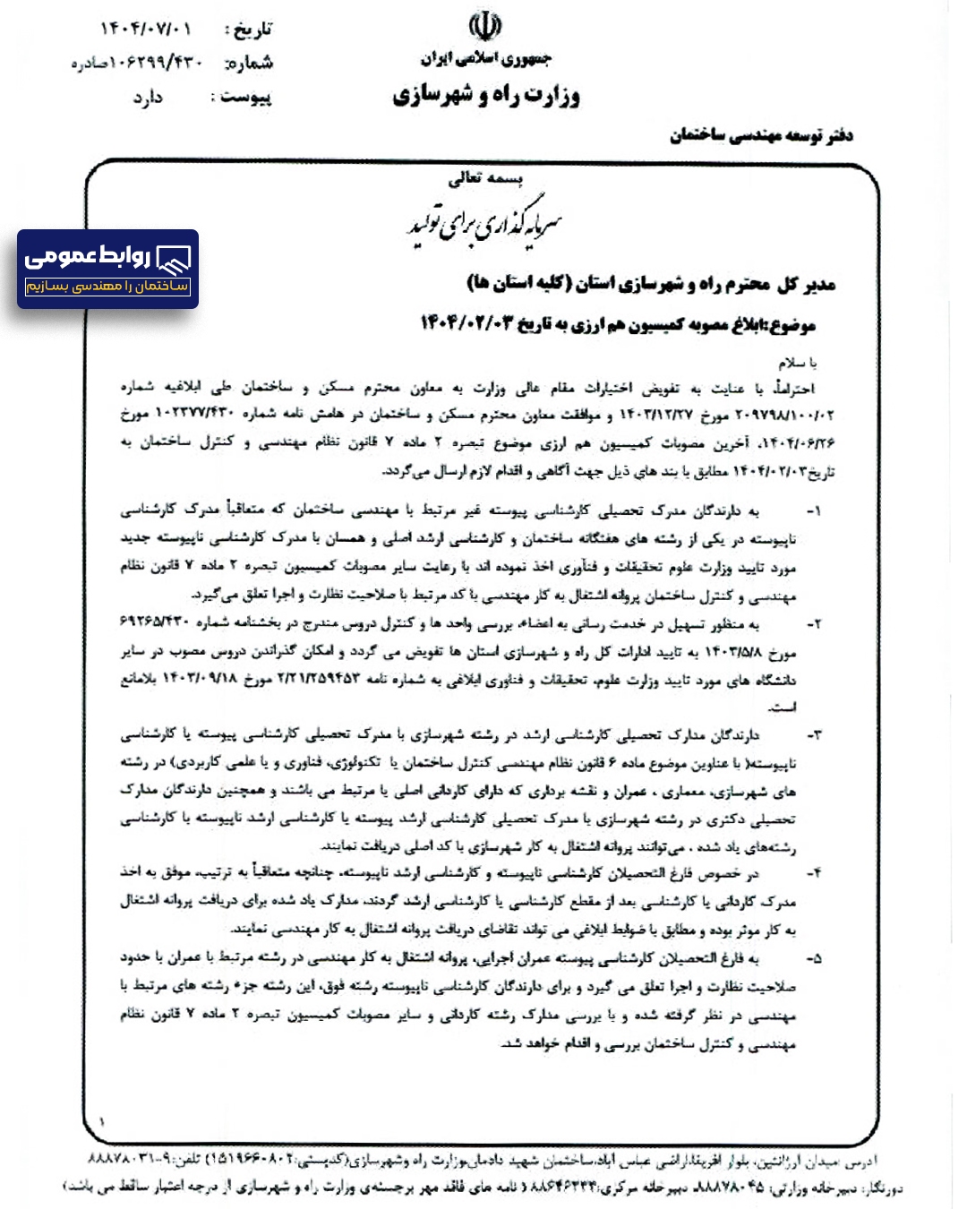 شیوه نامه صدور، تمدید و ارتقاء پایه مهندسی