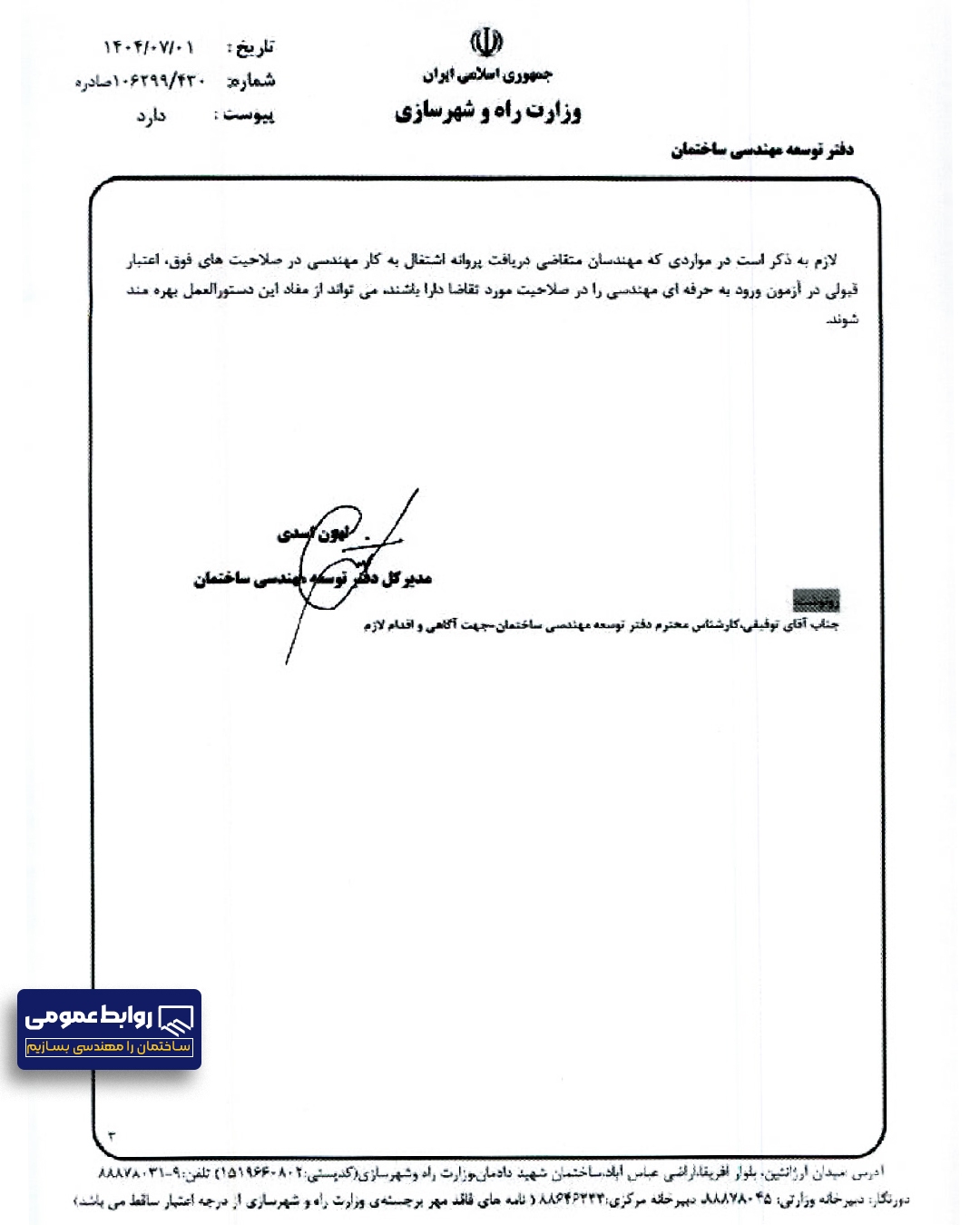 دستورالعمل ثبت نام آزمون ورود به حرفه مهندسان