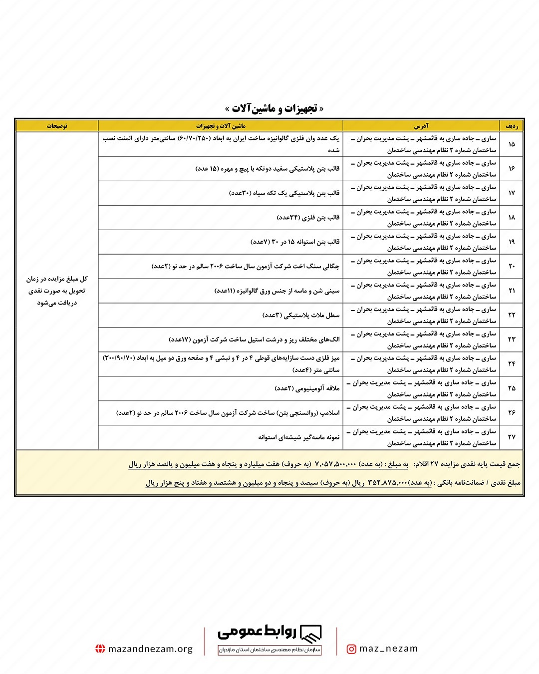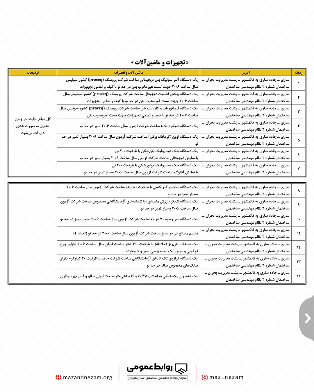 تمدید آگهی مزایده عمومی فروش املاک و تجهیزات و ماشین آلات آزمایشگاه