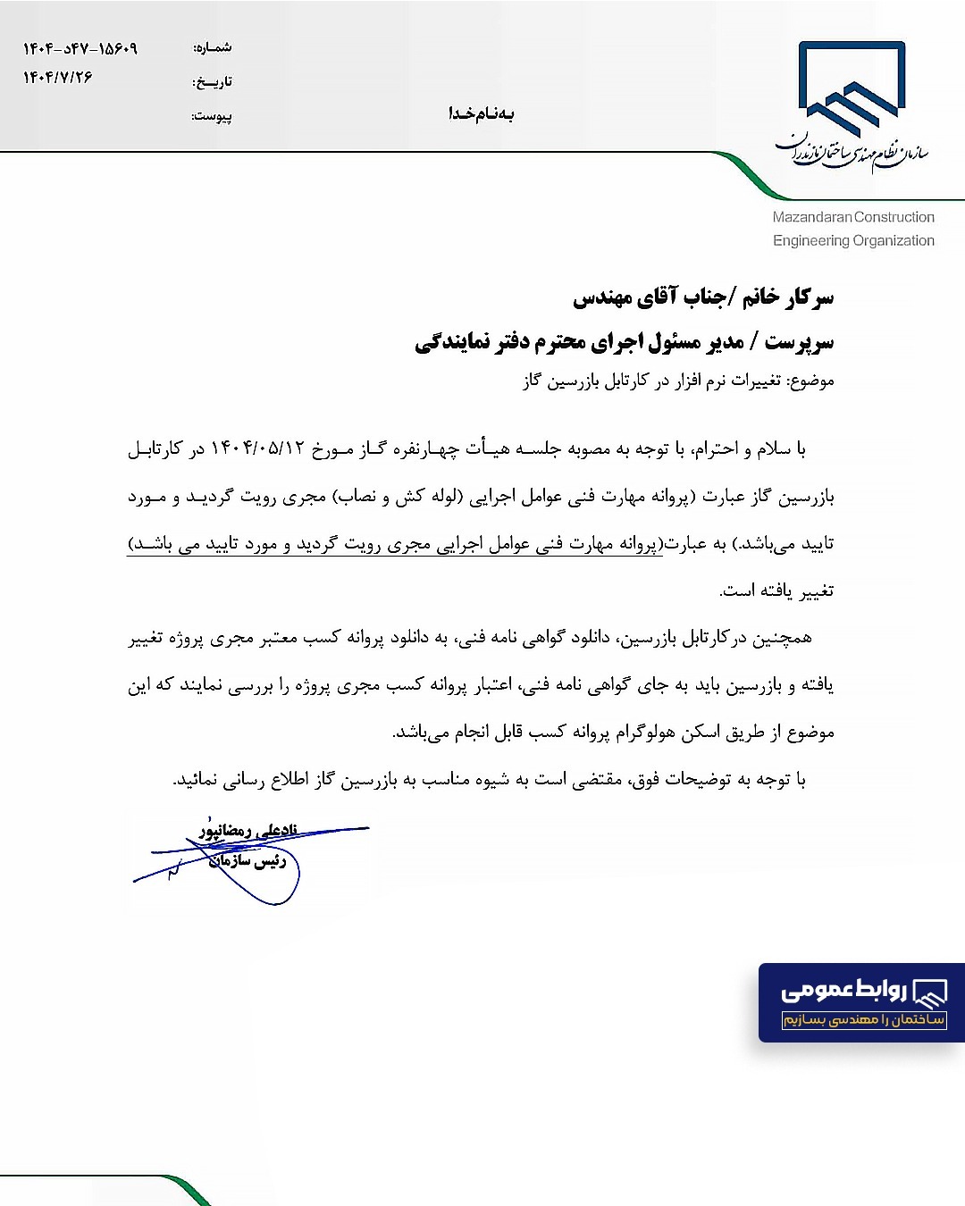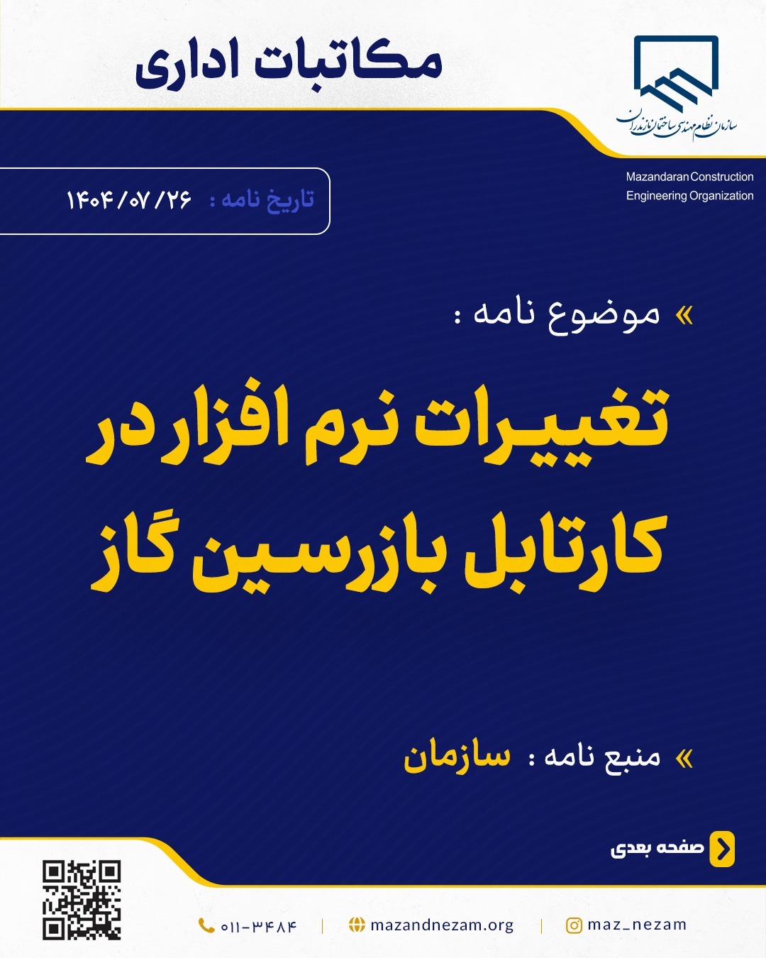 تغییرات نرم افزار در کارتابل بازرسین گاز