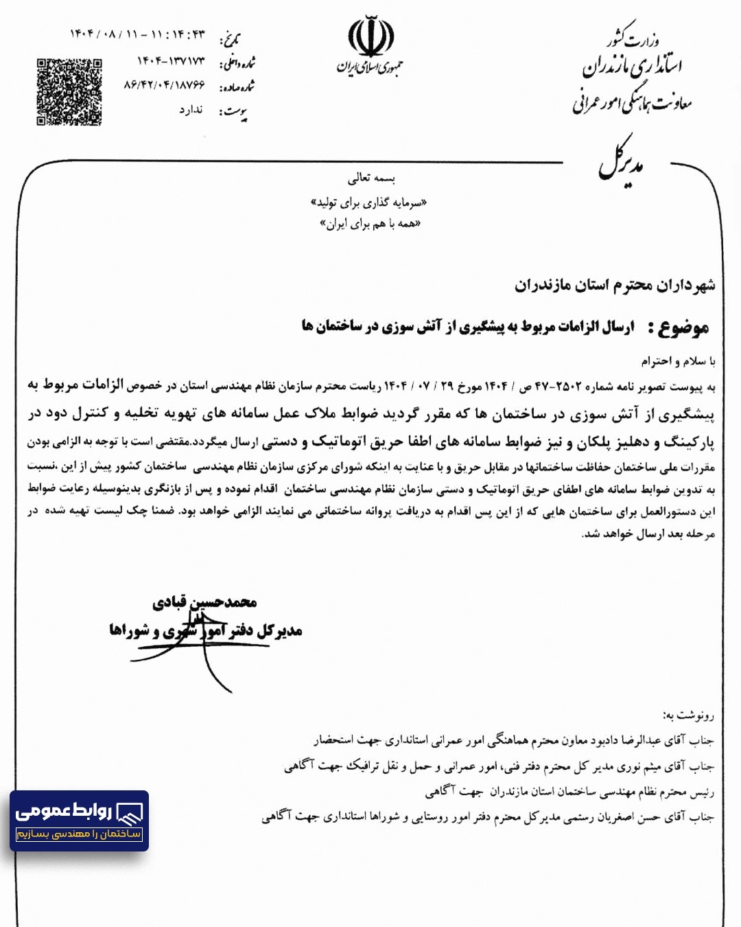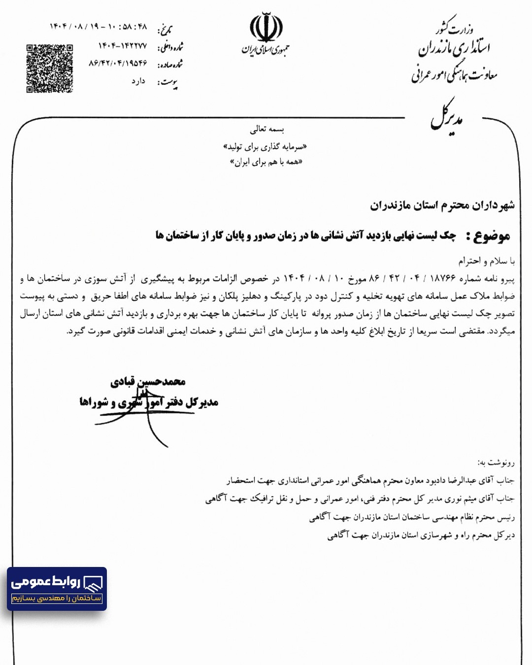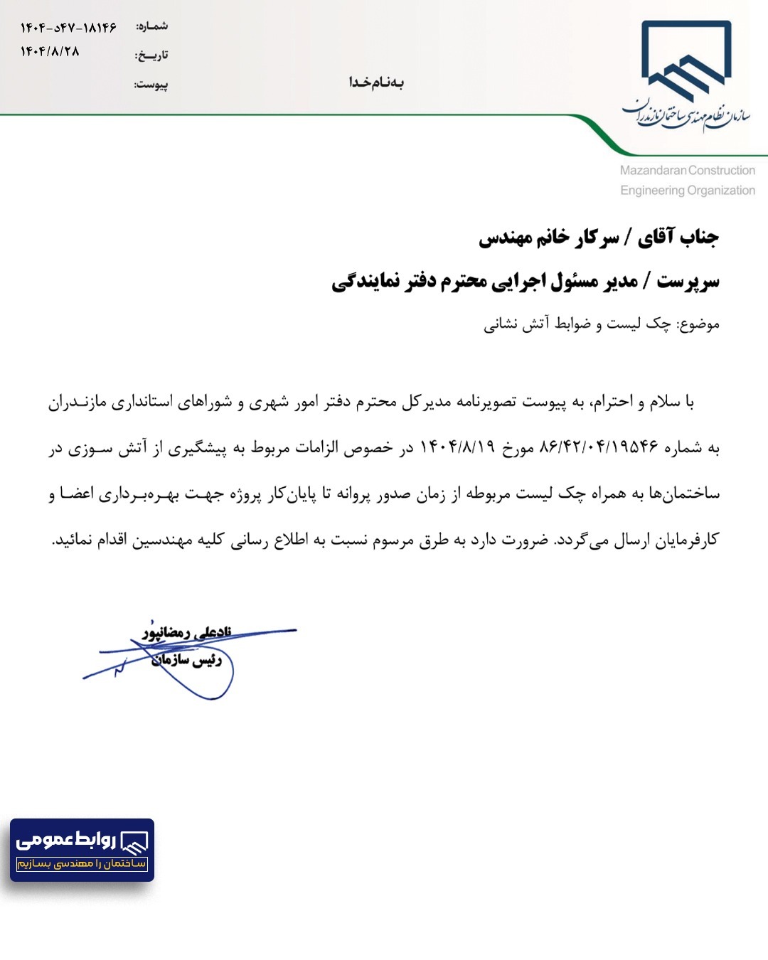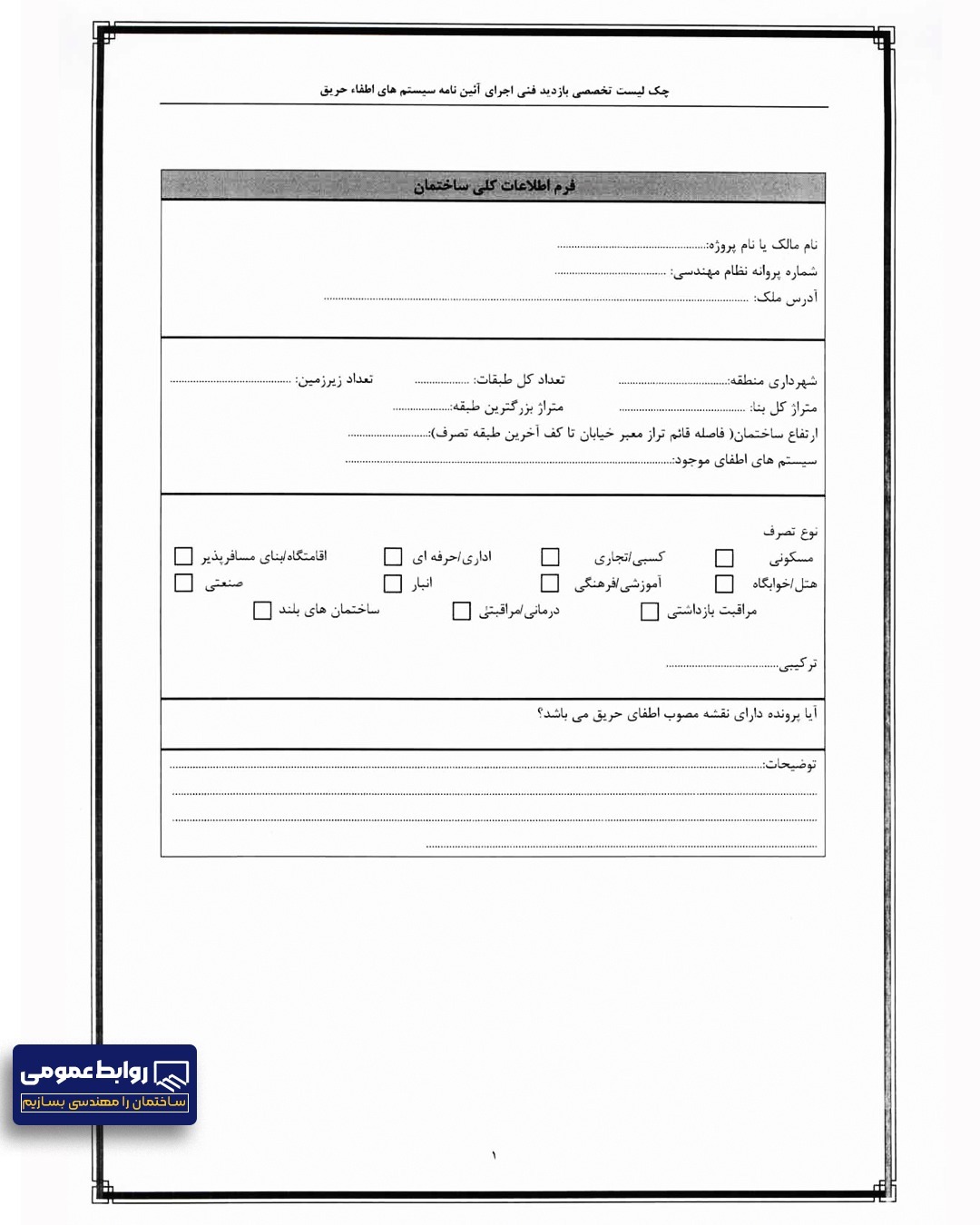 چک لیست و ضوابط آتش نشانی