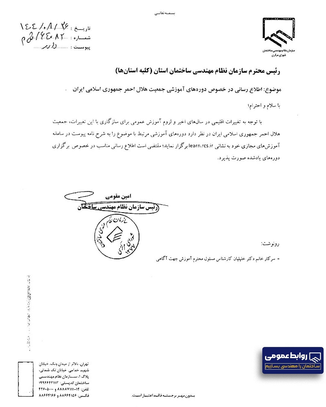 ابلاغ دستور العمل تعیین وضعیت ارتقای پروانه اشتغال به کار مهندسی از پایه ۱ به ارشد