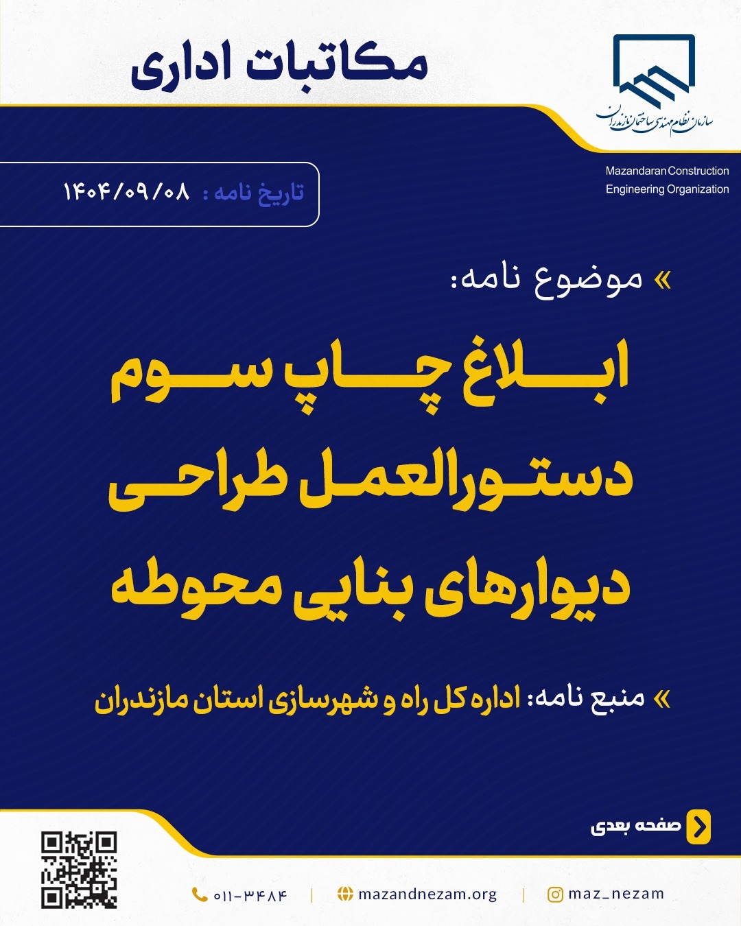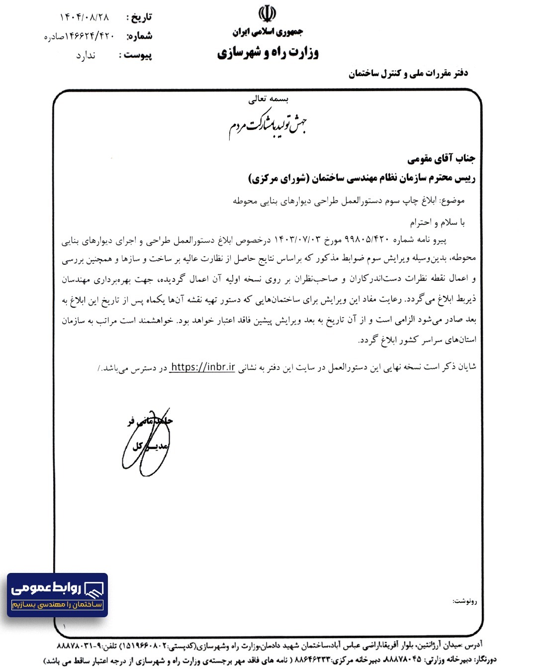 ابلاغ چاپ سوم دستورالعمل طراحی دیوارهای بنایی محوطه