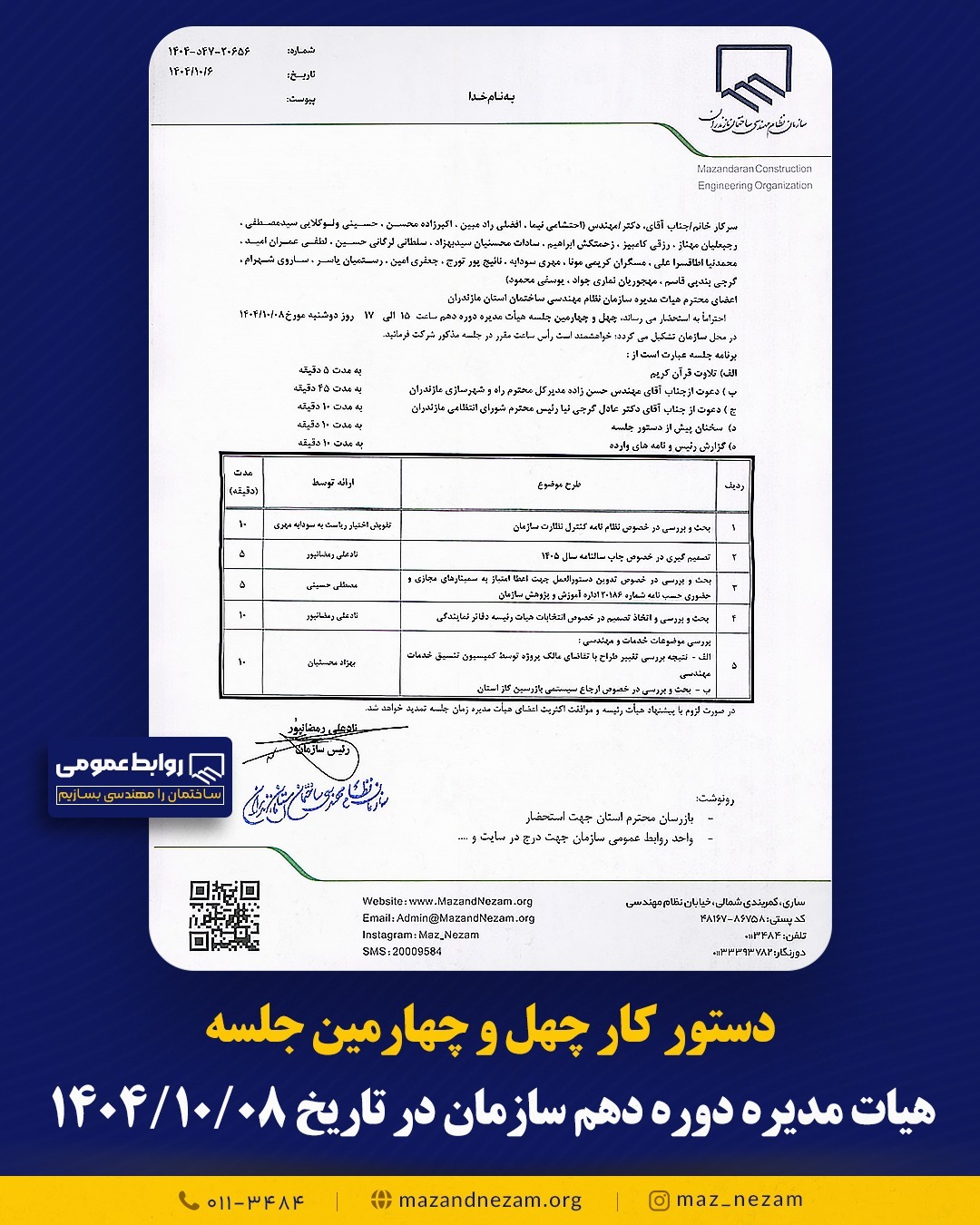 دستورکار چهل و چهارمین جلسه هیأت مدیره دوره دهم