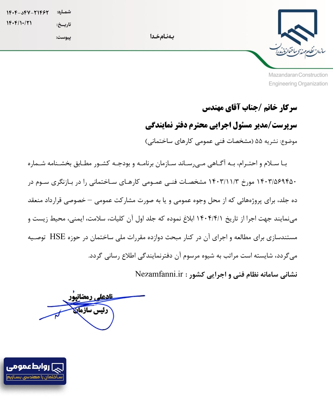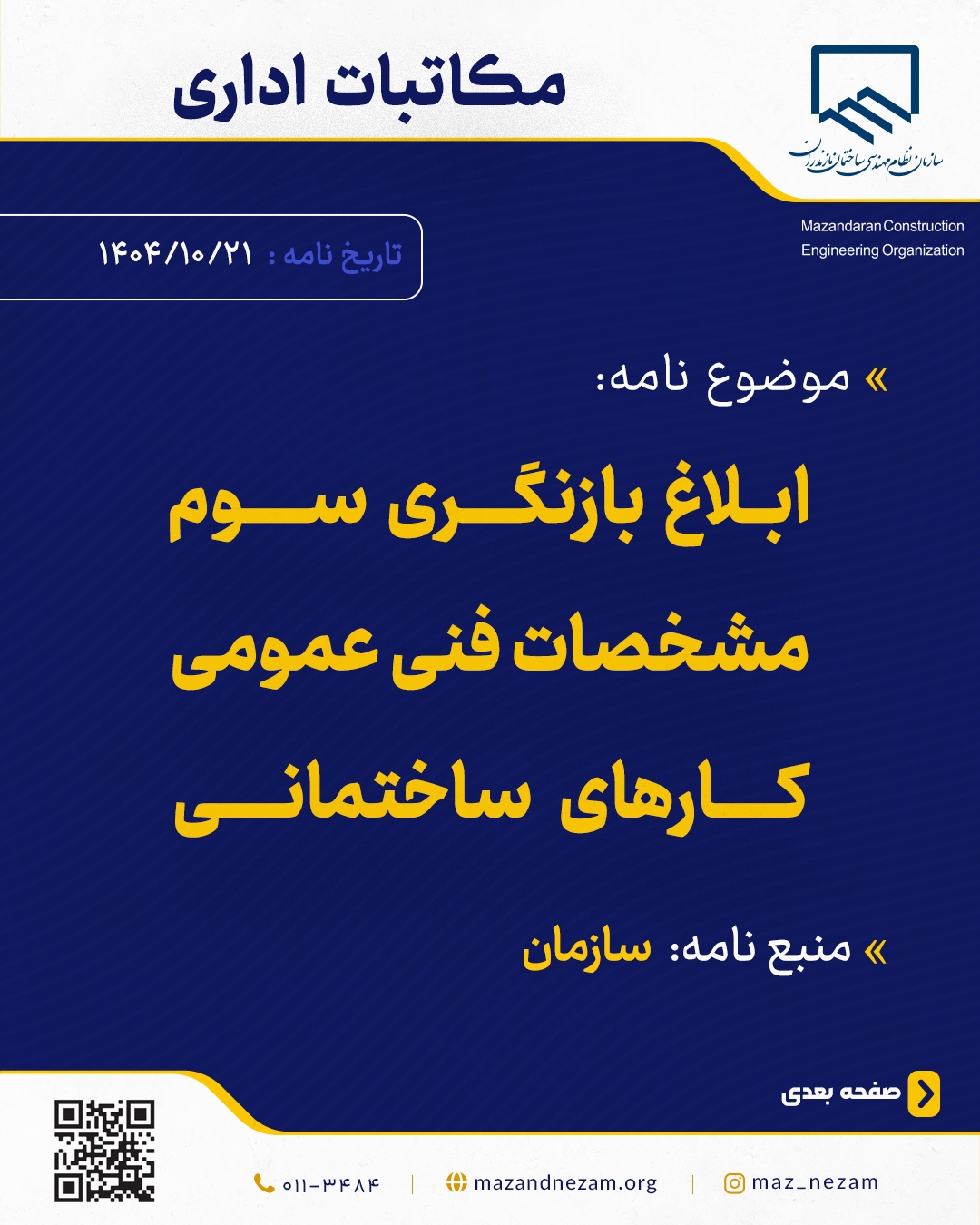 ابلاغ بازنگری سوم مشخصات فنی عمومی کارهای ساختمانی